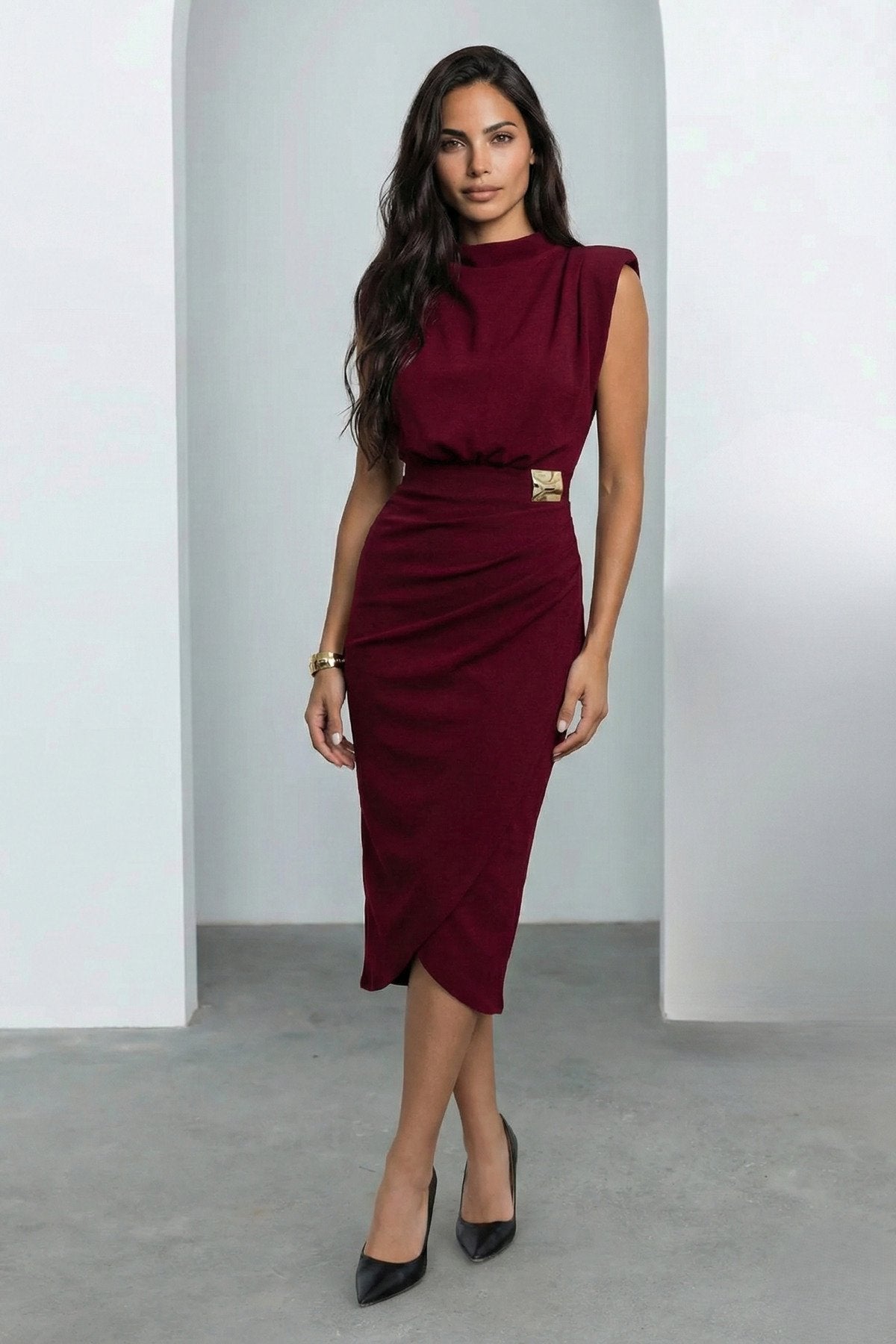 - Modern ve şık tasarımıyla dikkat çeken anvelop kesim, vücut hatlarını zarifçe sararak feminen bir siluet sunar.; - Düğün, nişan, söz ve mezuniyet gibi özel günlerde tercih edilebilecek zarif bir elbise modeli.; - Kolsuz tasarımı sayesinde yaz aylarında serinlik sağlarken, vatkalı yapısı ile şık bir görünüm kazandırır.; - Fermuarlı kapama şekli pratik kullanım imkanı sunarken, düz deseniyle sade ve elegan bir stil oluşturur.; - Scuba Krep dokuma tipi, esnek yapısıyla rahat bir kullanım sağlar ve hareket özgürlüğü tanır.; - Slim fit kalıbı sayesinde vücuda tam oturan bir görünüm elde edilirken, normal boy uzunluğu her türlü vücut tipine uyum sağlar.; - Tüm sezonlar için uygun olan bu elbise, mevsim geçişlerinde de rahatlıkla tercih edilebilir.; - Cepsiz tasarımı, minimalist ve sofistike bir görünüm sunarken, astarsız yapısıyla hafif ve konforlu bir deneyim vaat eder.;