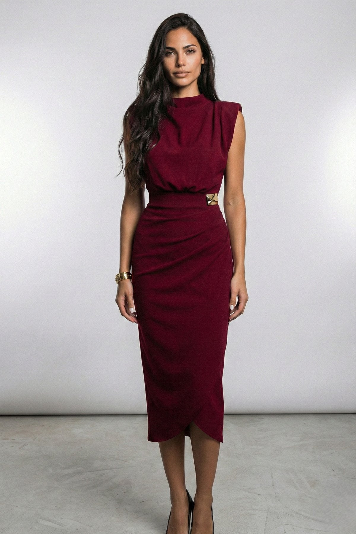 - Modern ve şık tasarımıyla dikkat çeken anvelop kesim, vücut hatlarını zarifçe sararak feminen bir siluet sunar.; - Düğün, nişan, söz ve mezuniyet gibi özel günlerde tercih edilebilecek zarif bir elbise modeli.; - Kolsuz tasarımı sayesinde yaz aylarında serinlik sağlarken, vatkalı yapısı ile şık bir görünüm kazandırır.; - Fermuarlı kapama şekli pratik kullanım imkanı sunarken, düz deseniyle sade ve elegan bir stil oluşturur.; - Scuba Krep dokuma tipi, esnek yapısıyla rahat bir kullanım sağlar ve hareket özgürlüğü tanır.; - Slim fit kalıbı sayesinde vücuda tam oturan bir görünüm elde edilirken, normal boy uzunluğu her türlü vücut tipine uyum sağlar.; - Tüm sezonlar için uygun olan bu elbise, mevsim geçişlerinde de rahatlıkla tercih edilebilir.; - Cepsiz tasarımı, minimalist ve sofistike bir görünüm sunarken, astarsız yapısıyla hafif ve konforlu bir deneyim vaat eder.;