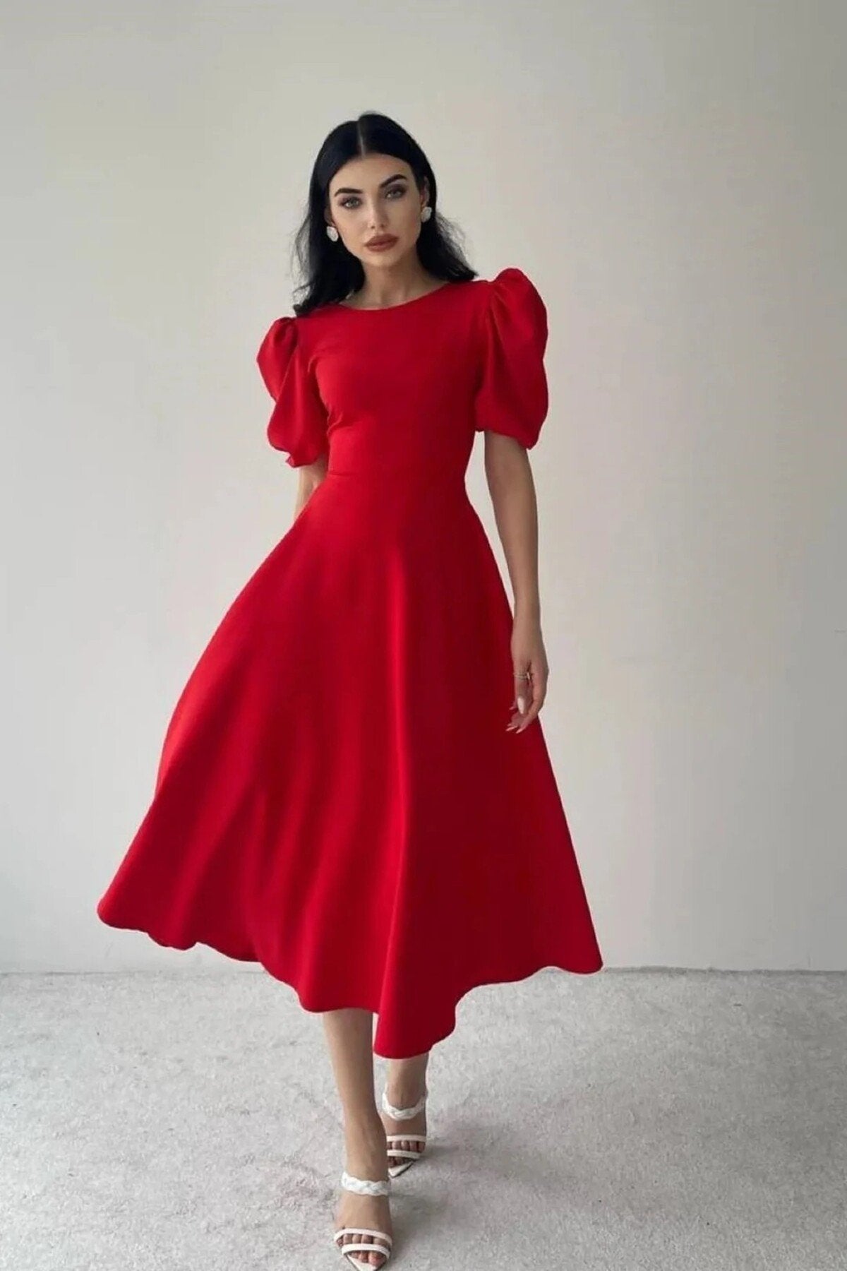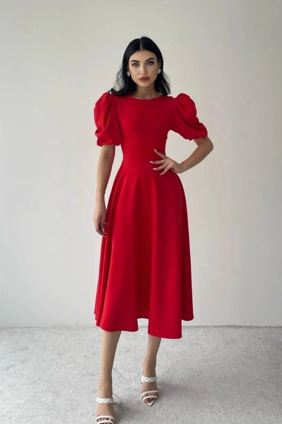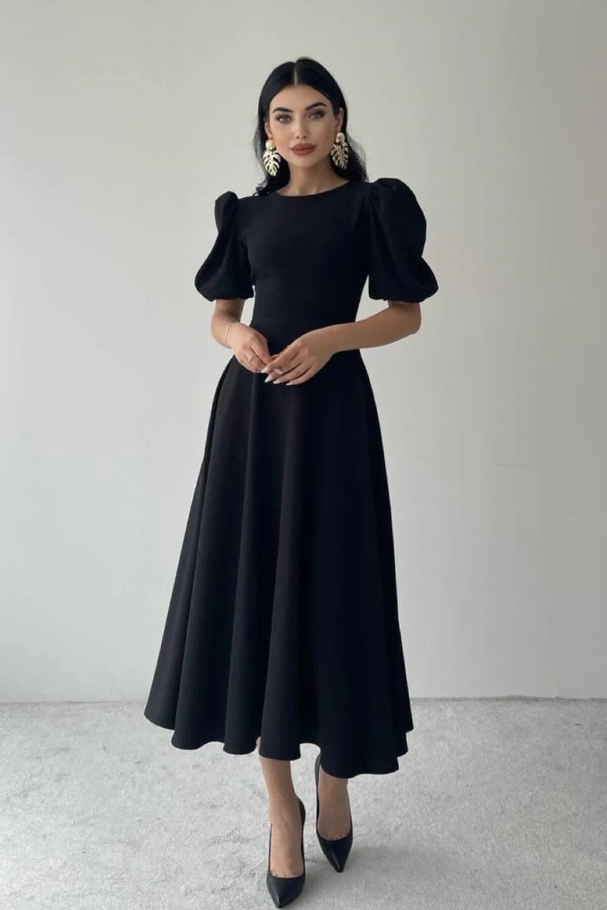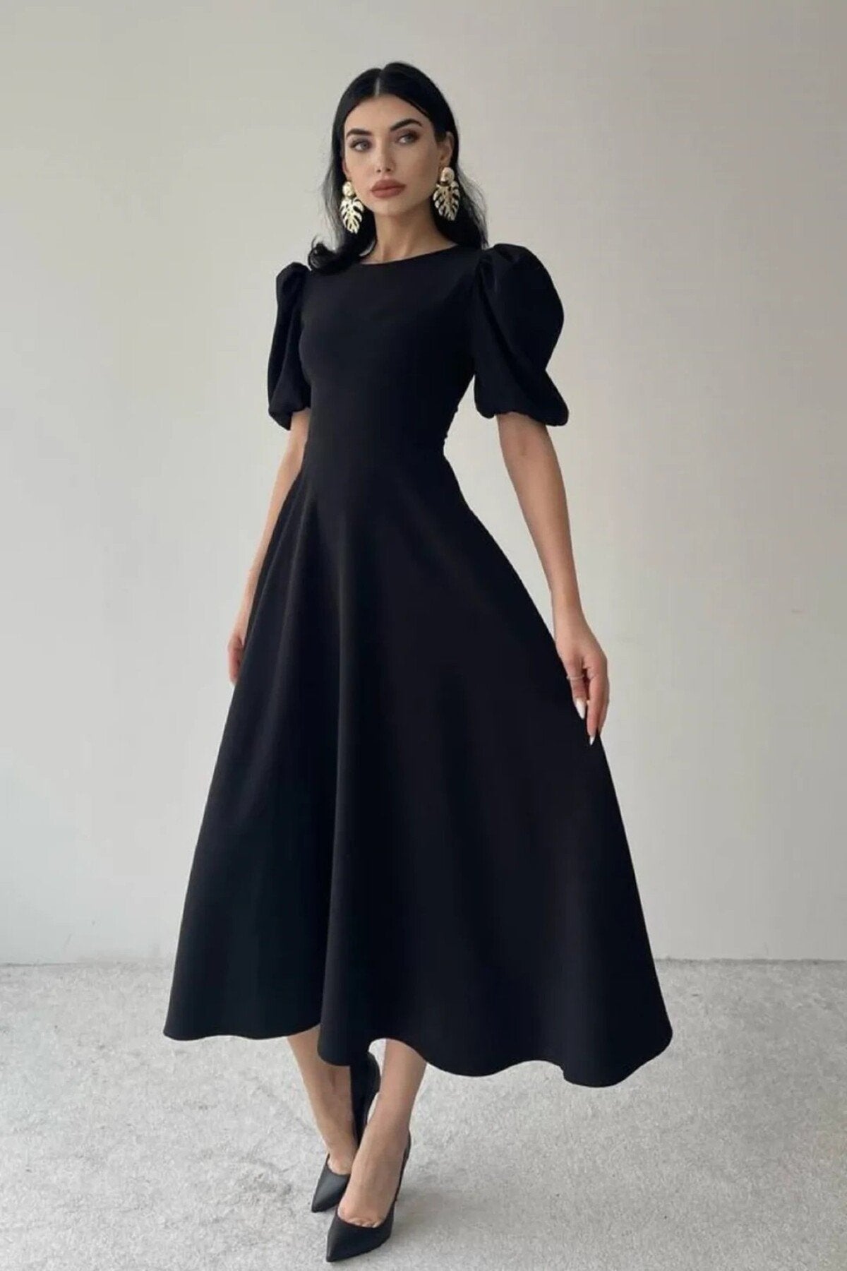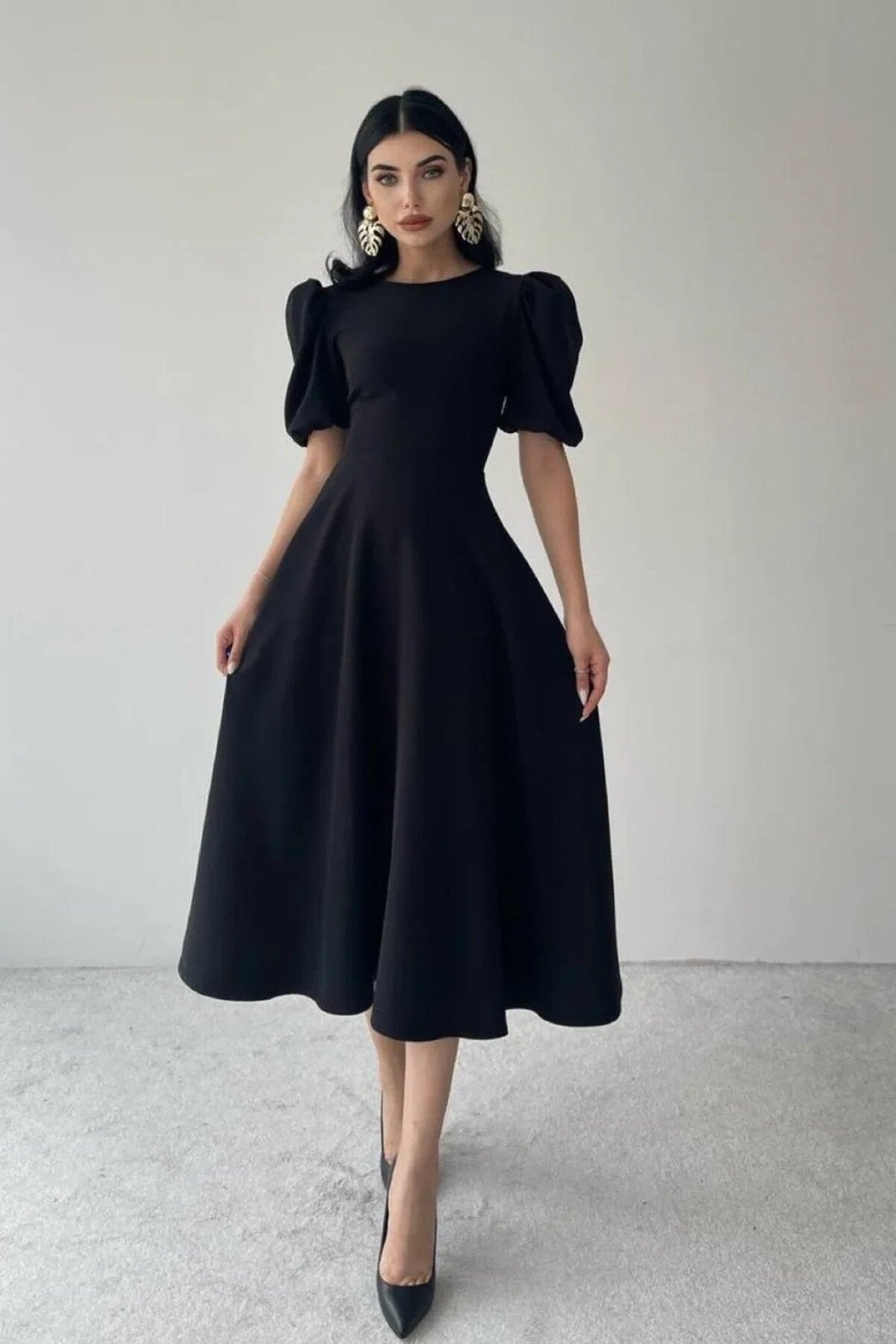 KADIN BALON KOL ETEĞİ KLOŞ MİDİ BOY ELBİSE