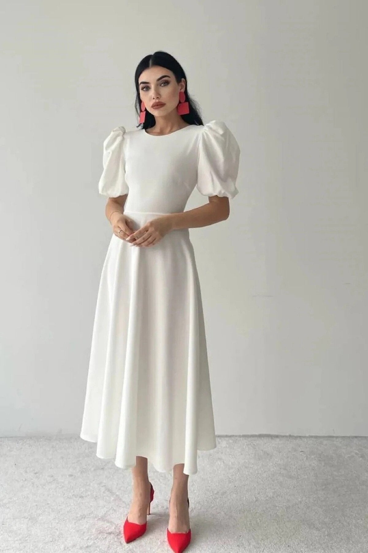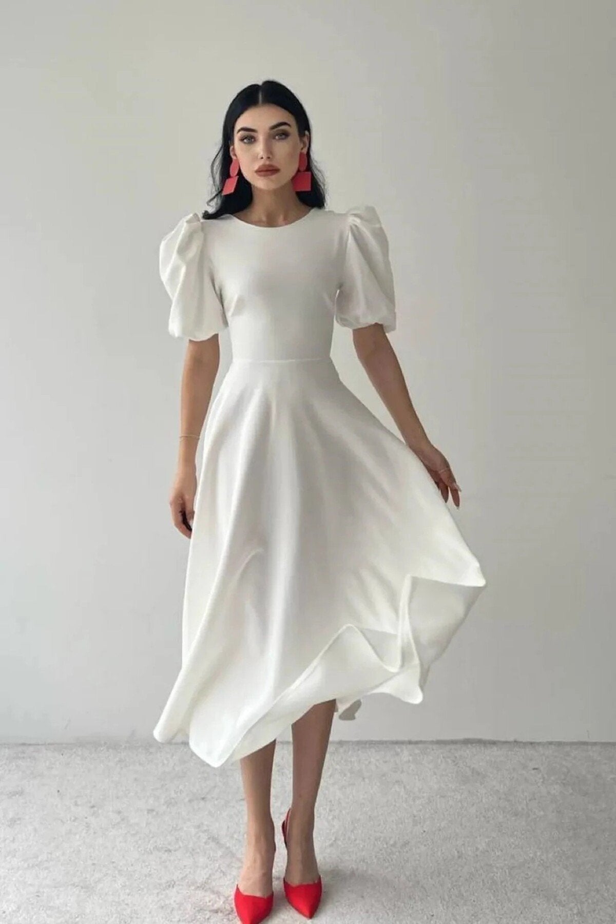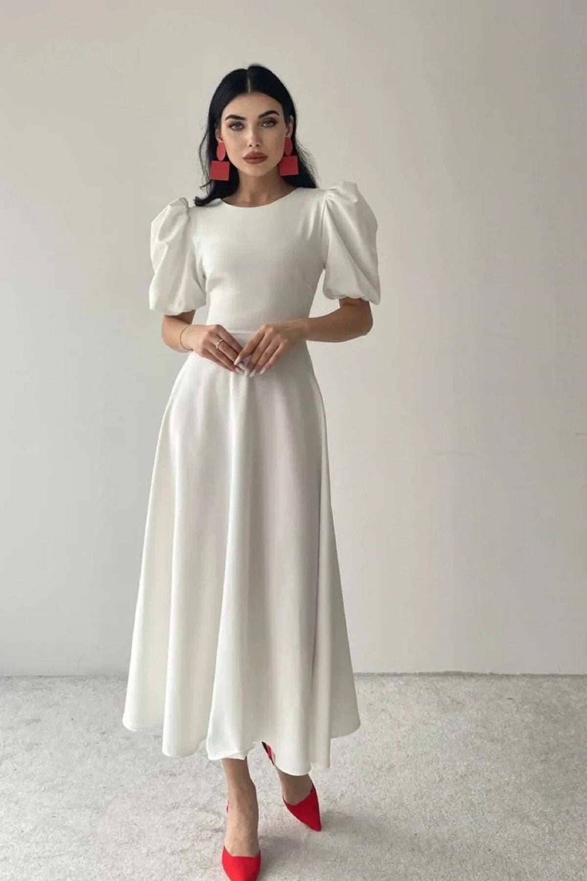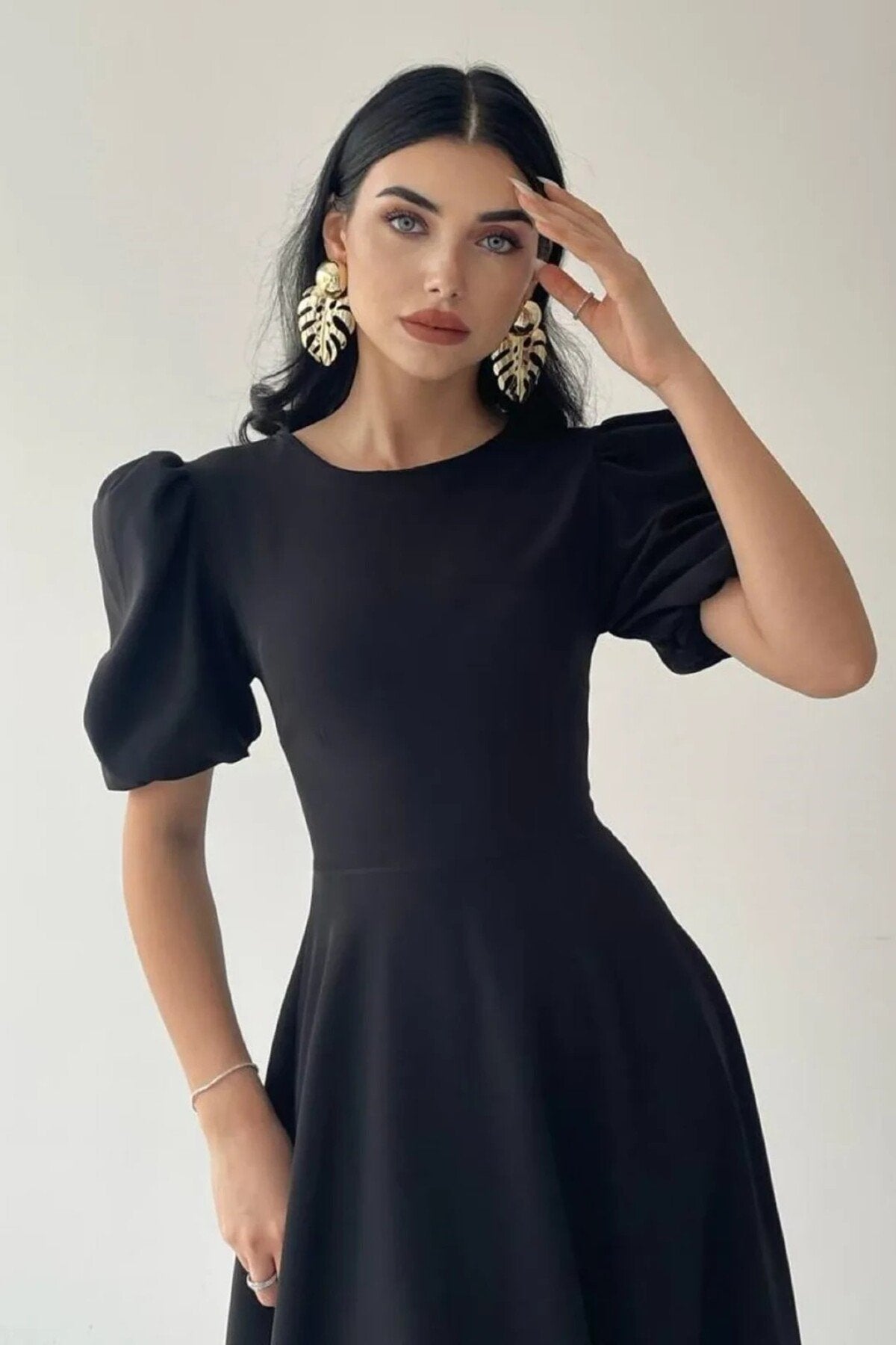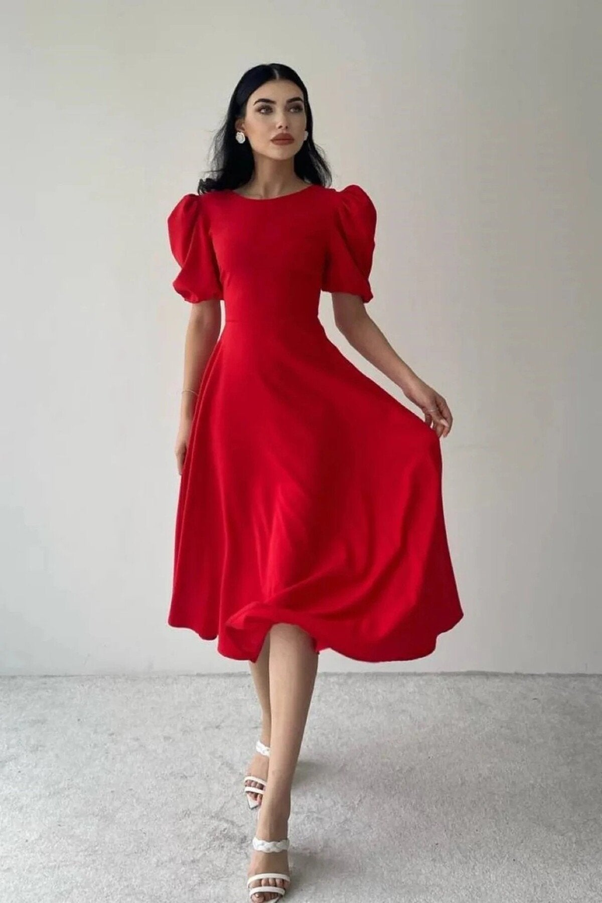 KADIN BALON KOL ETEĞİ KLOŞ MİDİ BOY ELBİSE