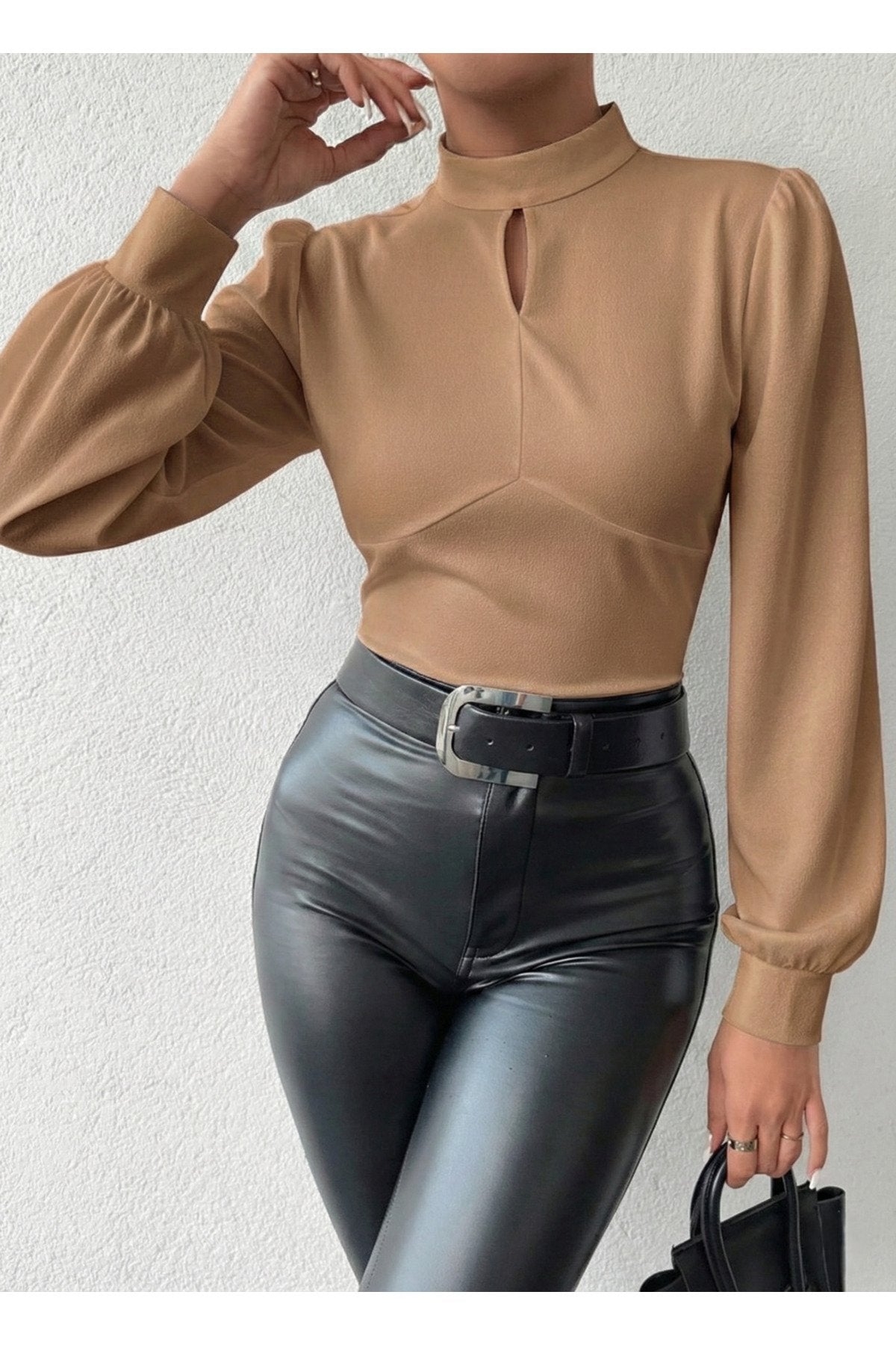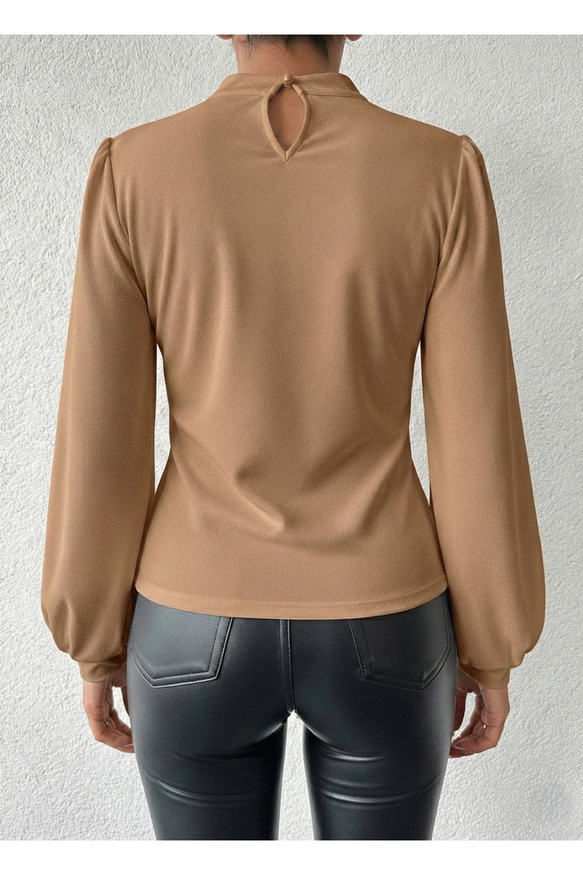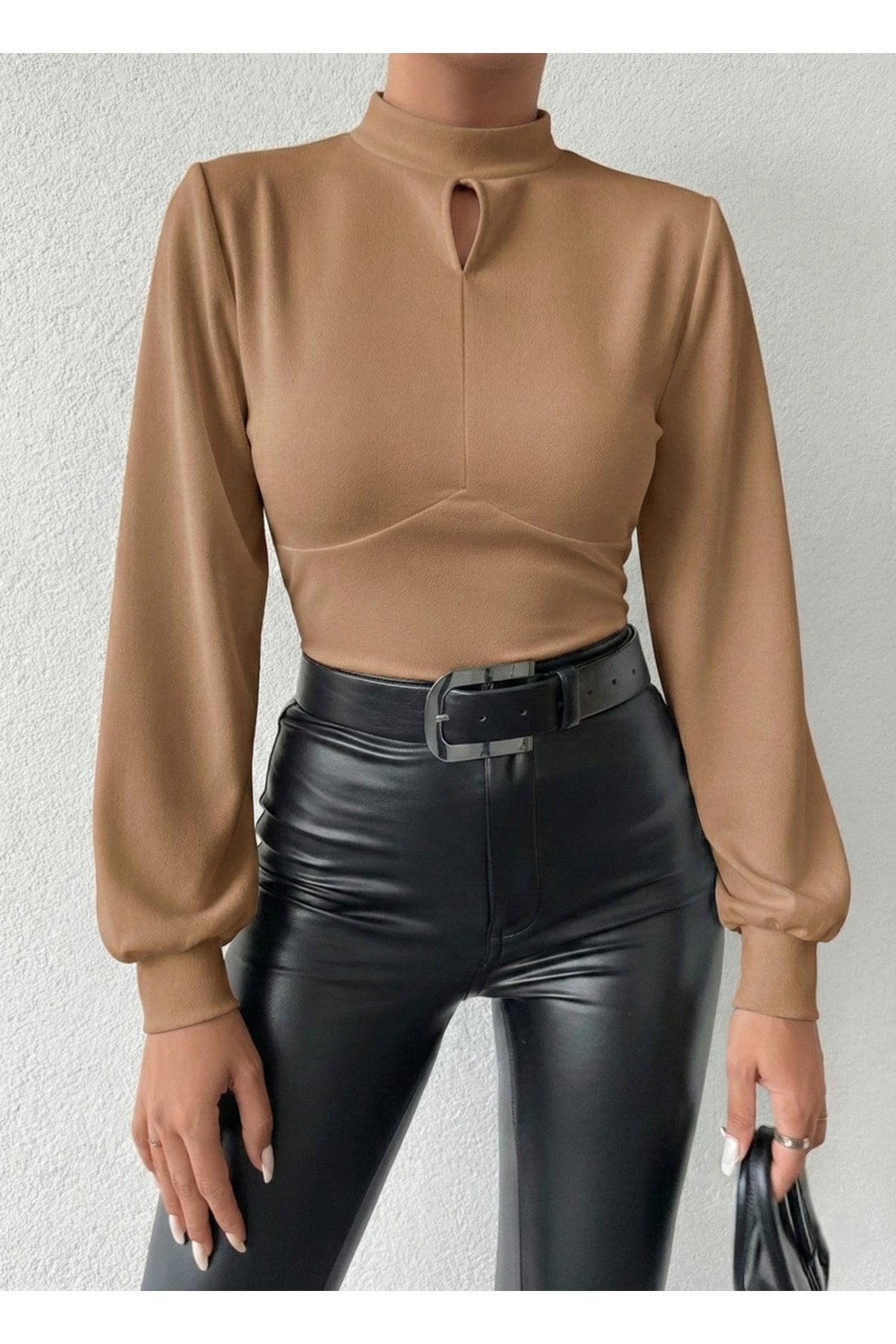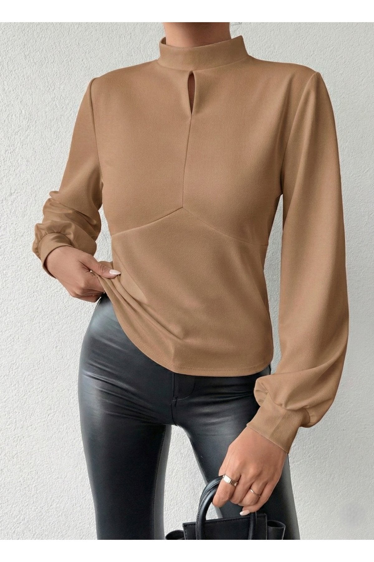 - Dik yaka tasarımı ile modern ve şık bir görünüm sunar.; - Tek parça halinde gelen bu bluz, gardırobunuzda kolayca yerini alır.; - Pratik düğmeli kapama şekli sayesinde giyip çıkarması rahattır.; - Balon kol detayı ile feminen ve zarif bir siluet çizer.; - Düz deseniyle sade ve şık bir tarz yaratmanızı sağlar.; - Uzun kol boyu, mevsim geçişlerinde ideal koruma sunar.; - Cut out detayı ile modern ve dinamik bir hava katar.; - Scuba Krep dokuma tipi, dayanıklılık ve konforu bir arada sunar.; - Baskısız tasarımıyla zamansız bir şıklık yaratır.; - Kapsız yapısıyla hafif ve rahat bir kullanım sağlar.; - Basic siluetiyle her tür alt giyimle kolayca kombinlenebilir.; - Orta kalınlıkta kumaşı sayesinde mevsim geçişlerinde idealdir.; - Cut out detayları ile dikkat çekici bir görünüm kazandırır.;