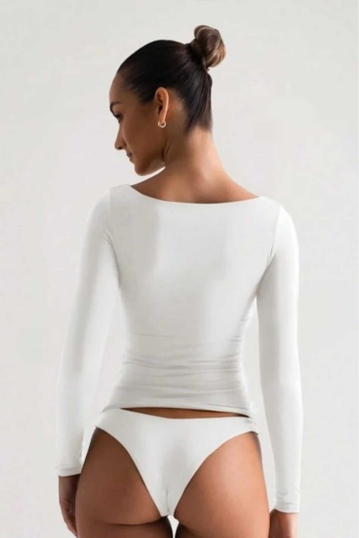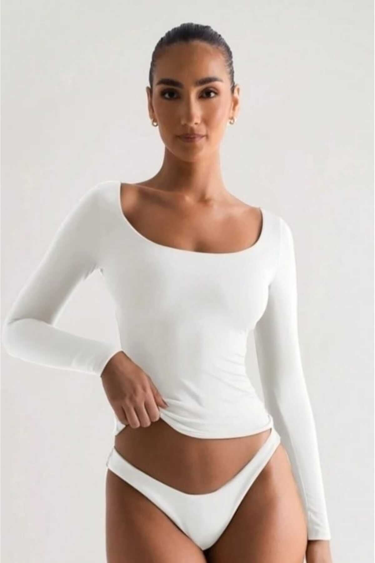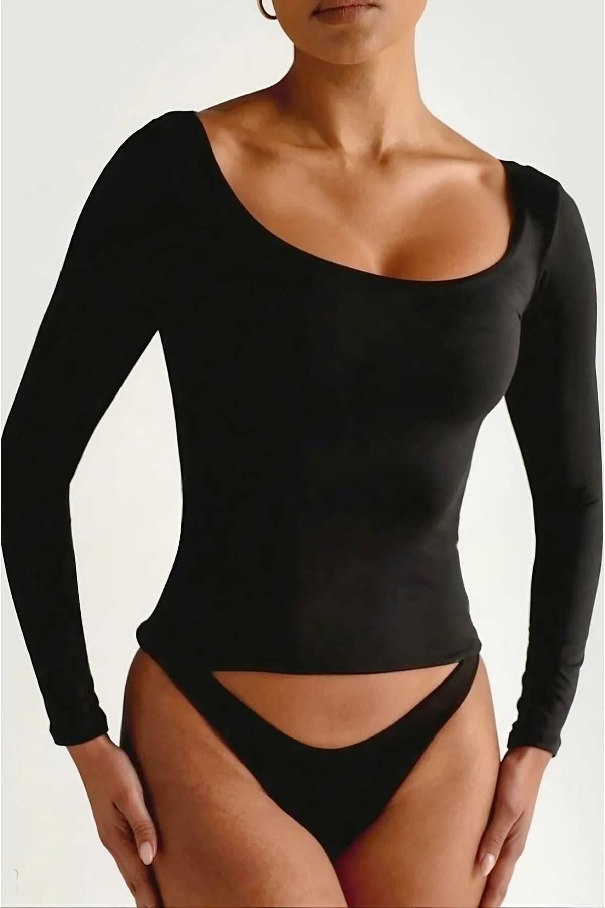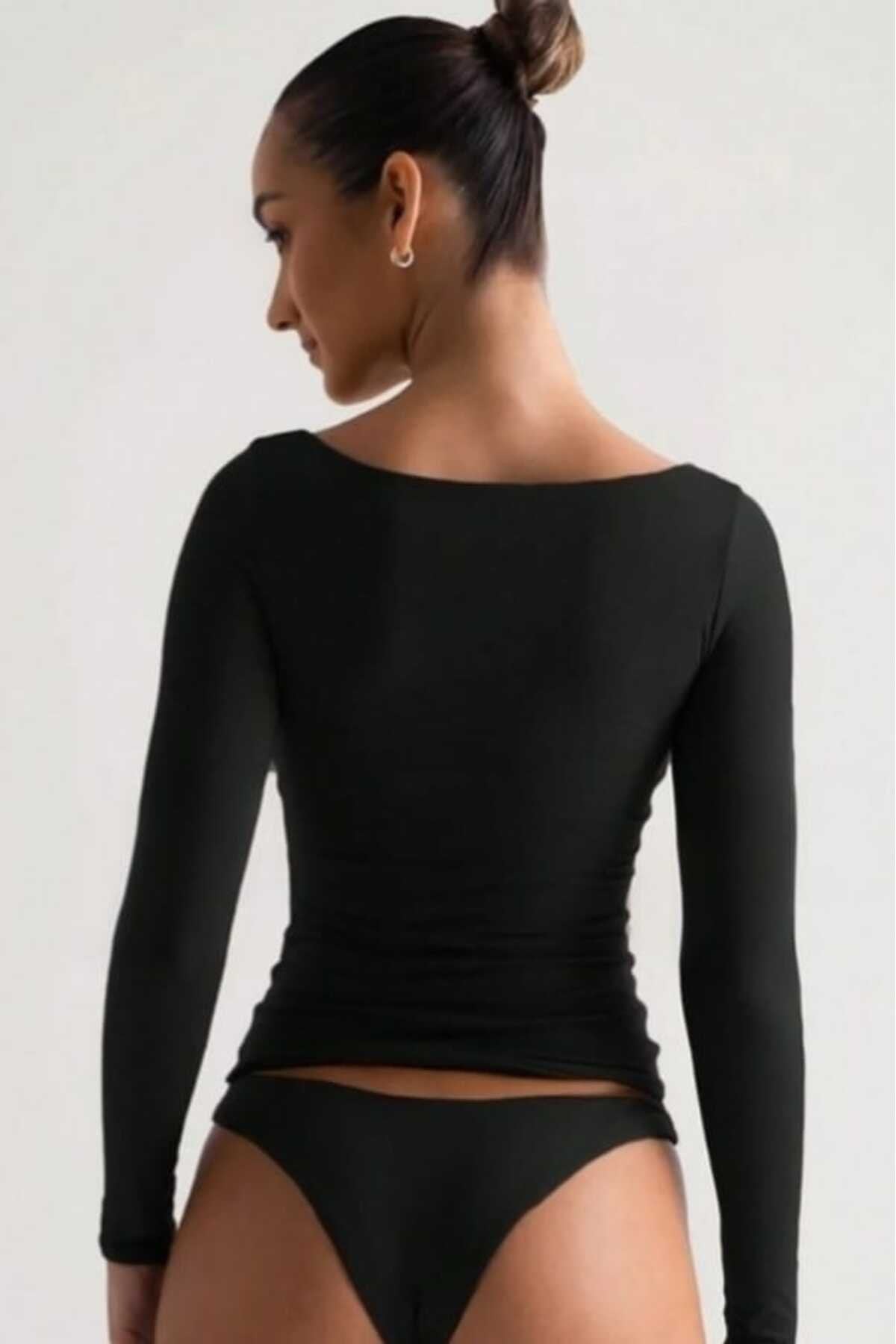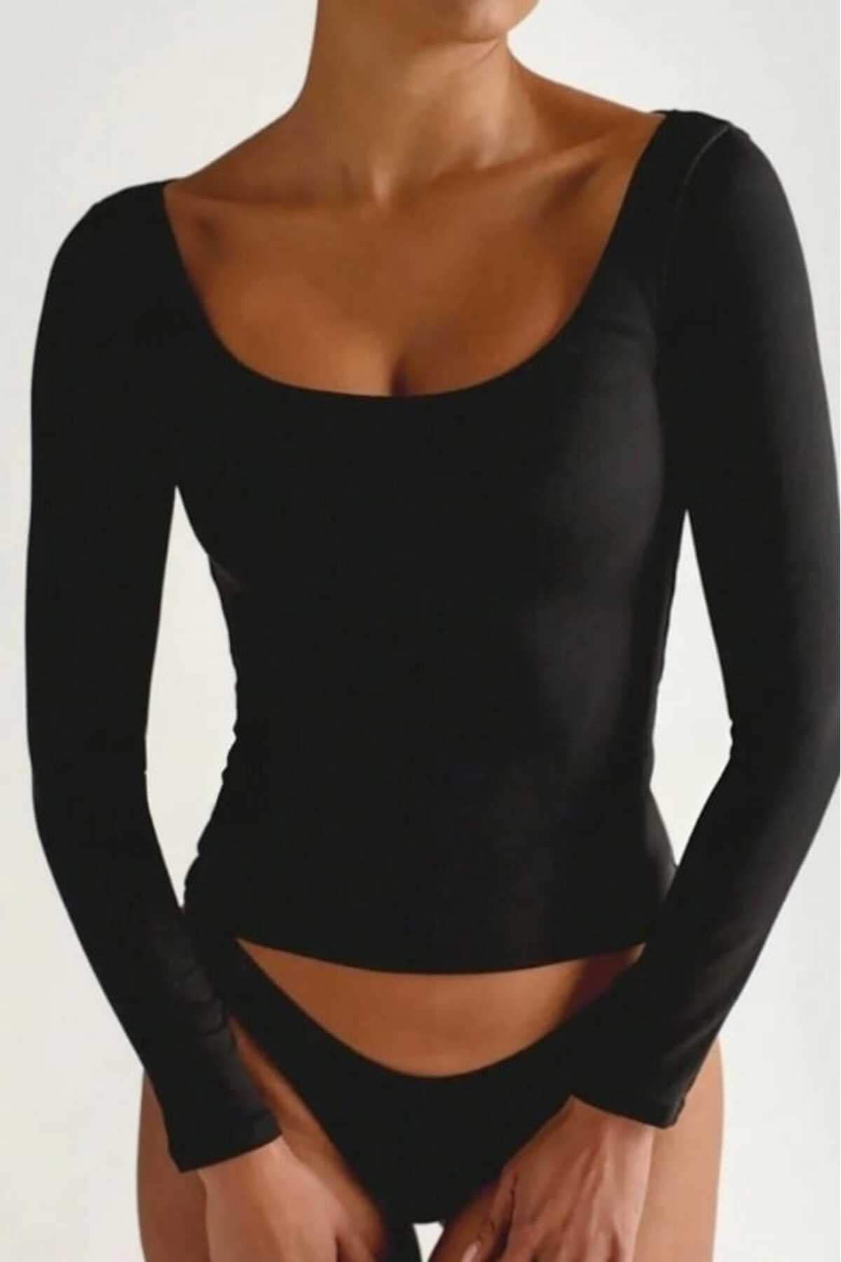 KADIN BASİC HAVUZ YAKA ÖNÜ ÇİFT KAT LİKRALI BLUZ