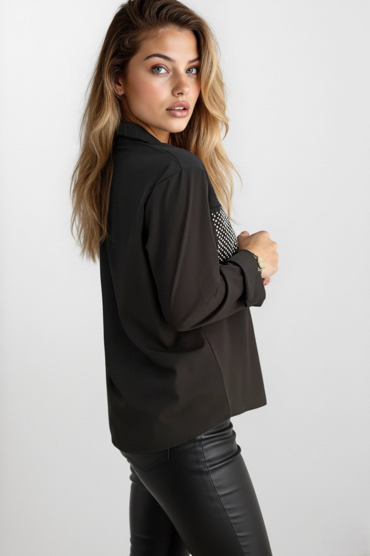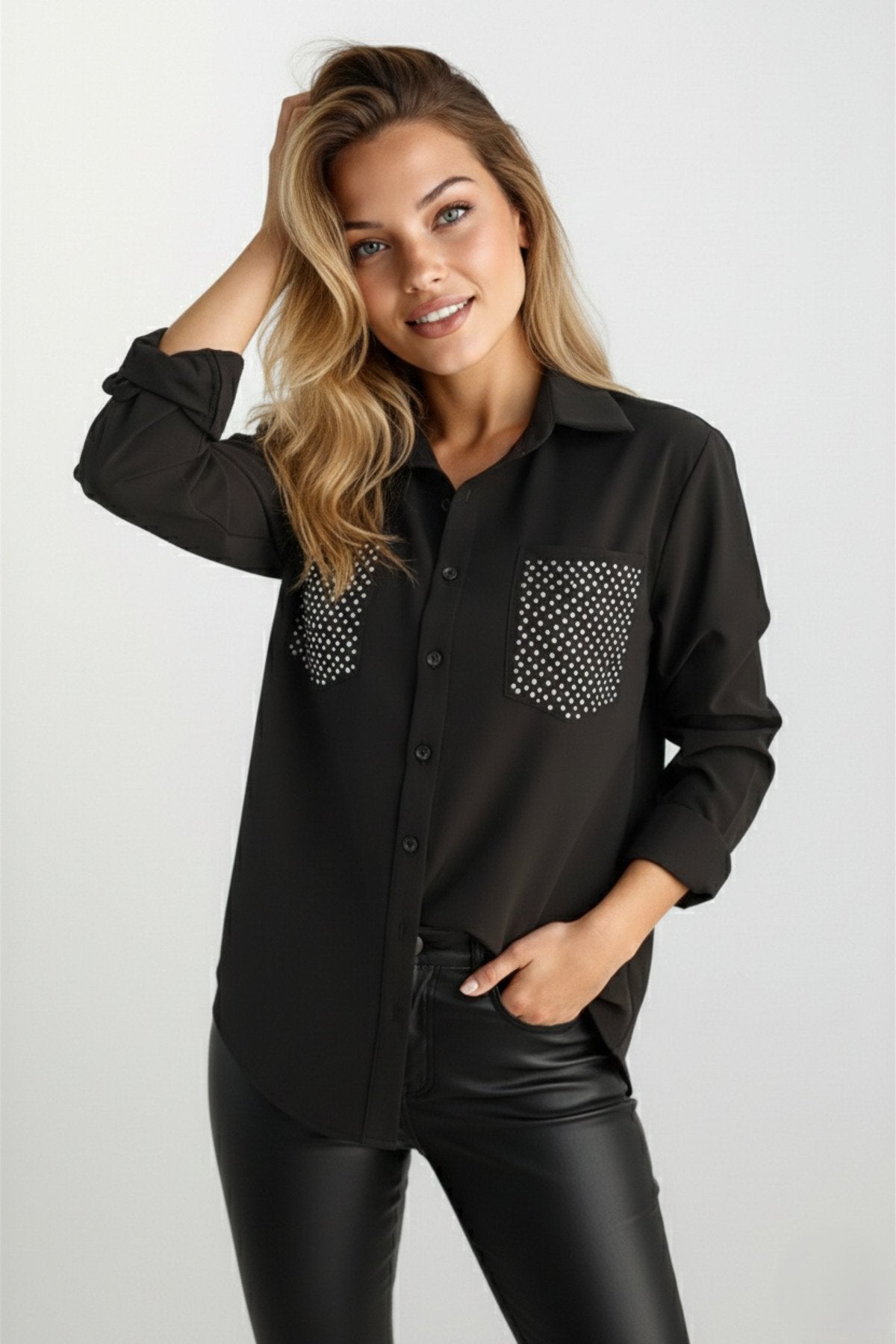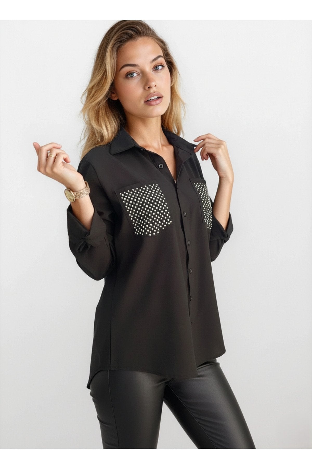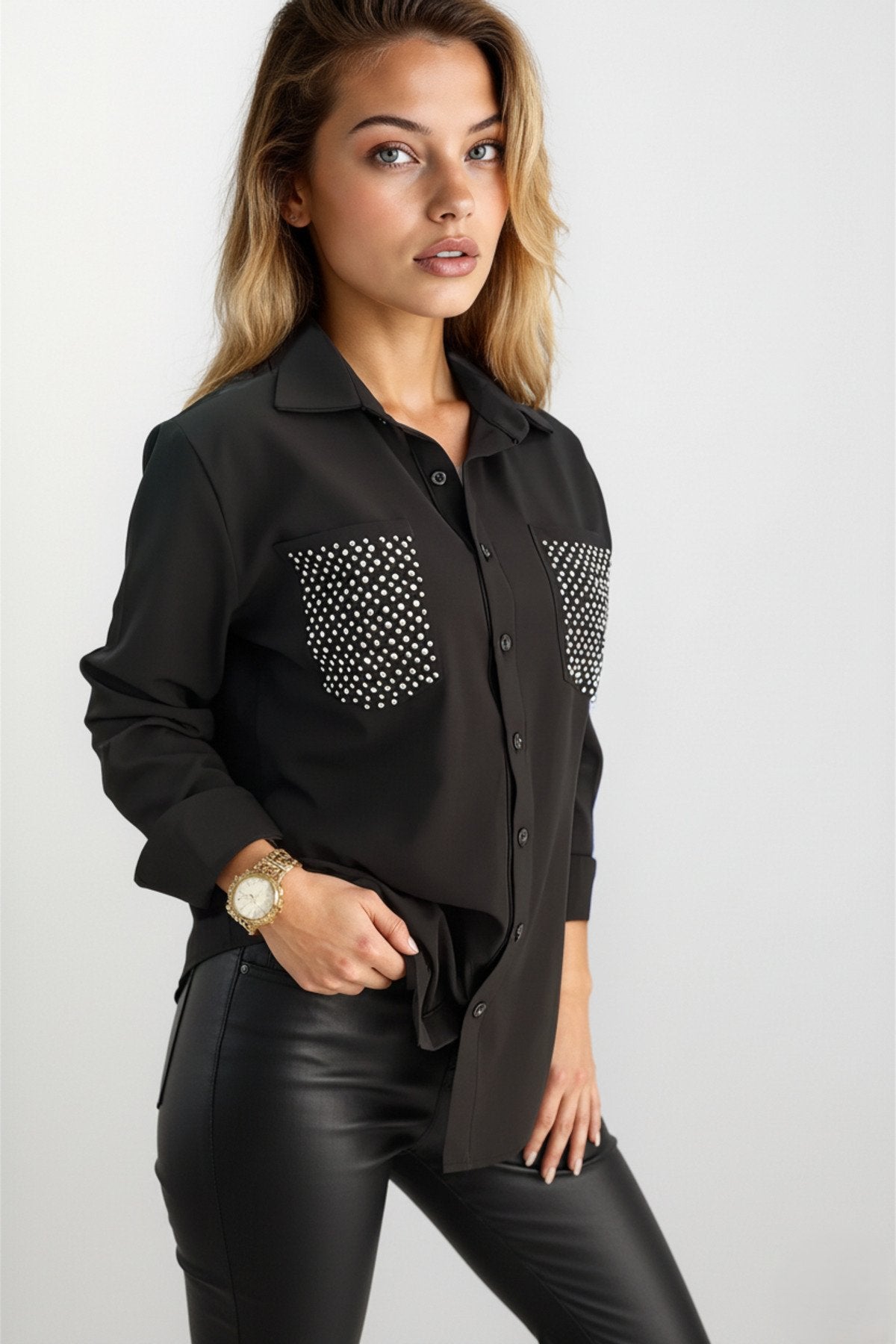 KADIN CEPLERİ TAŞLI UZUN KOL GÖMLEK