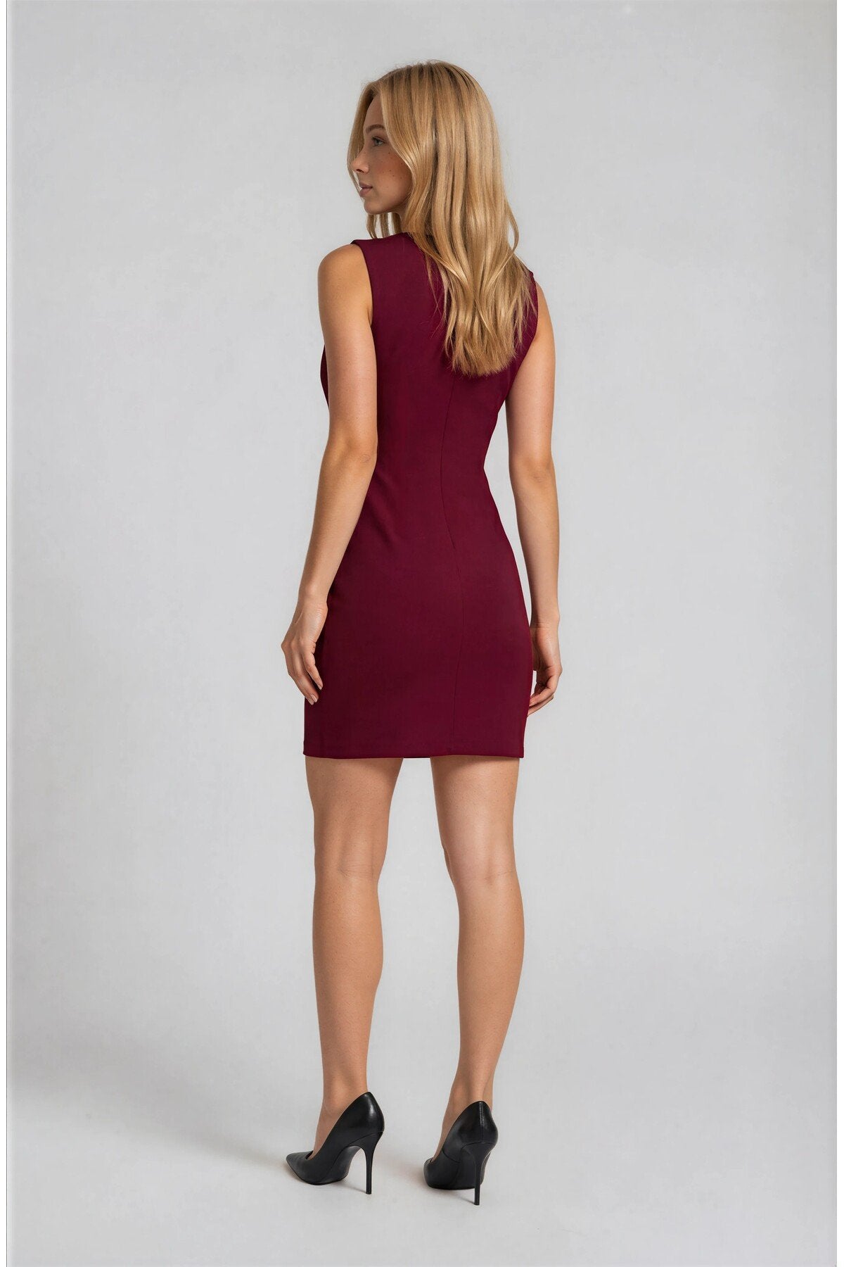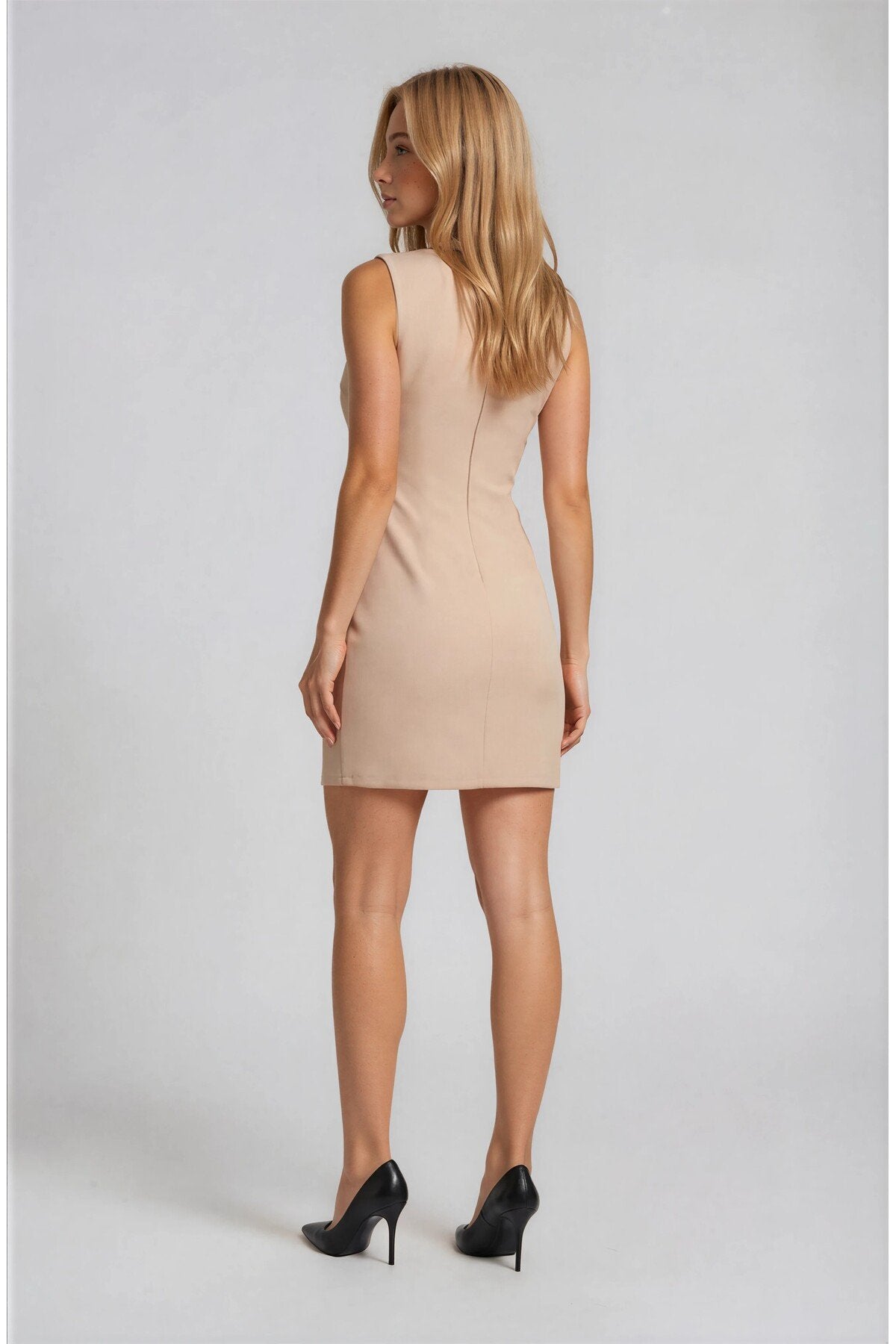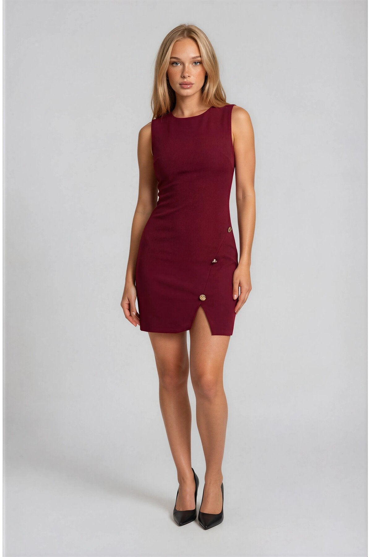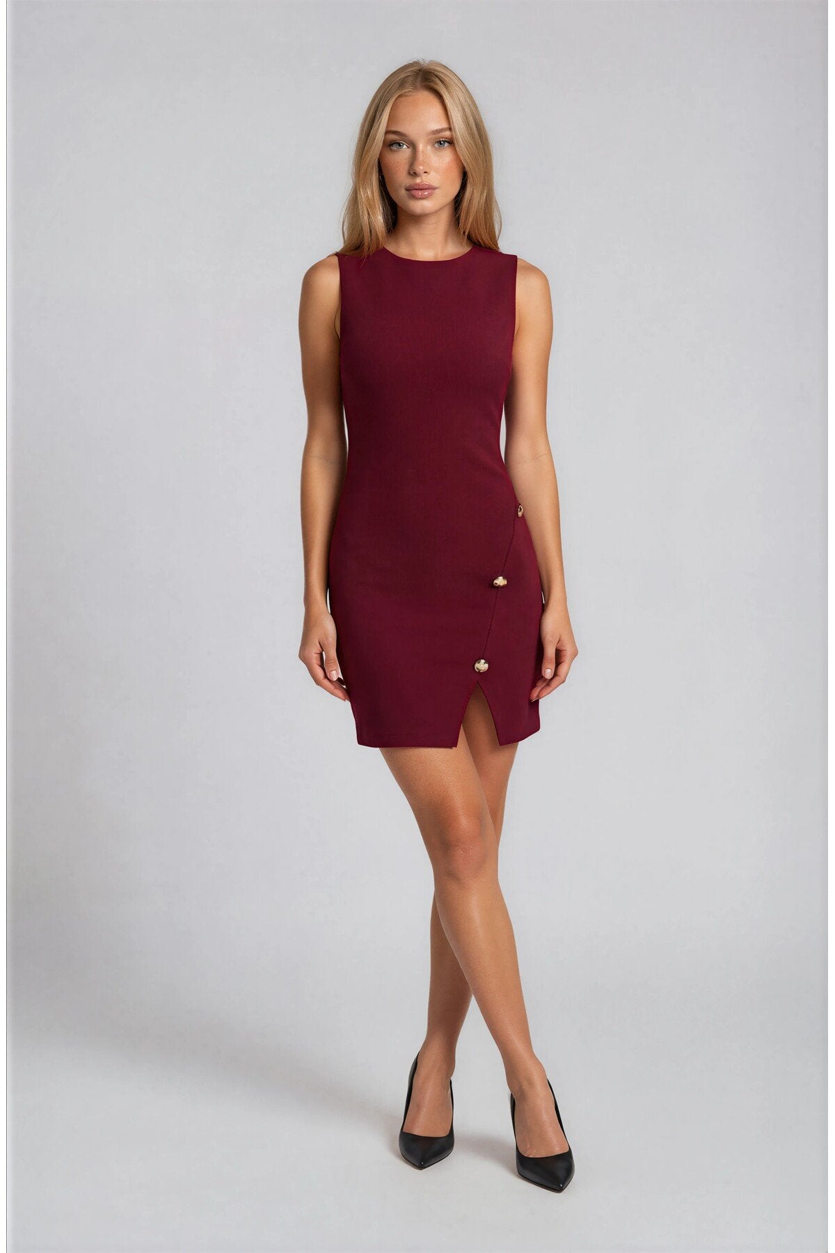 - Zarif tasarımıyla her ortamda şıklığınızı ön plana çıkaracak, kadınların vazgeçilmezi mini elbise.; - Kolsuz tasarımı sayesinde yaz aylarında serinlik ve rahatlık sunar.; - Düz dokuma kumaşı, şık ve sade bir görünüm sağlar.; - Yırtmaç detayı ile feminen siluetinizi vurgular ve hareket özgürlüğü tanır.; - Düğme detayları ile klasik ve modern çizgileri bir arada sunar.; - Yuvarlak yaka tasarımı, boynunuzu zarifçe çerçeveler.; - Kalem kalıbı sayesinde vücut hatlarınıza mükemmel uyum sağlar.; - Fermuarlı kapama şekli pratik kullanım imkanı sunar.; - Tek parça olarak sunulan bu elbise, gardırobunuzun temel parçalarından biri olacak.; - Tüm sezonlar için uygun olan bu elbise ile her mevsim şıklığınızdan ödün vermezsiniz.;
