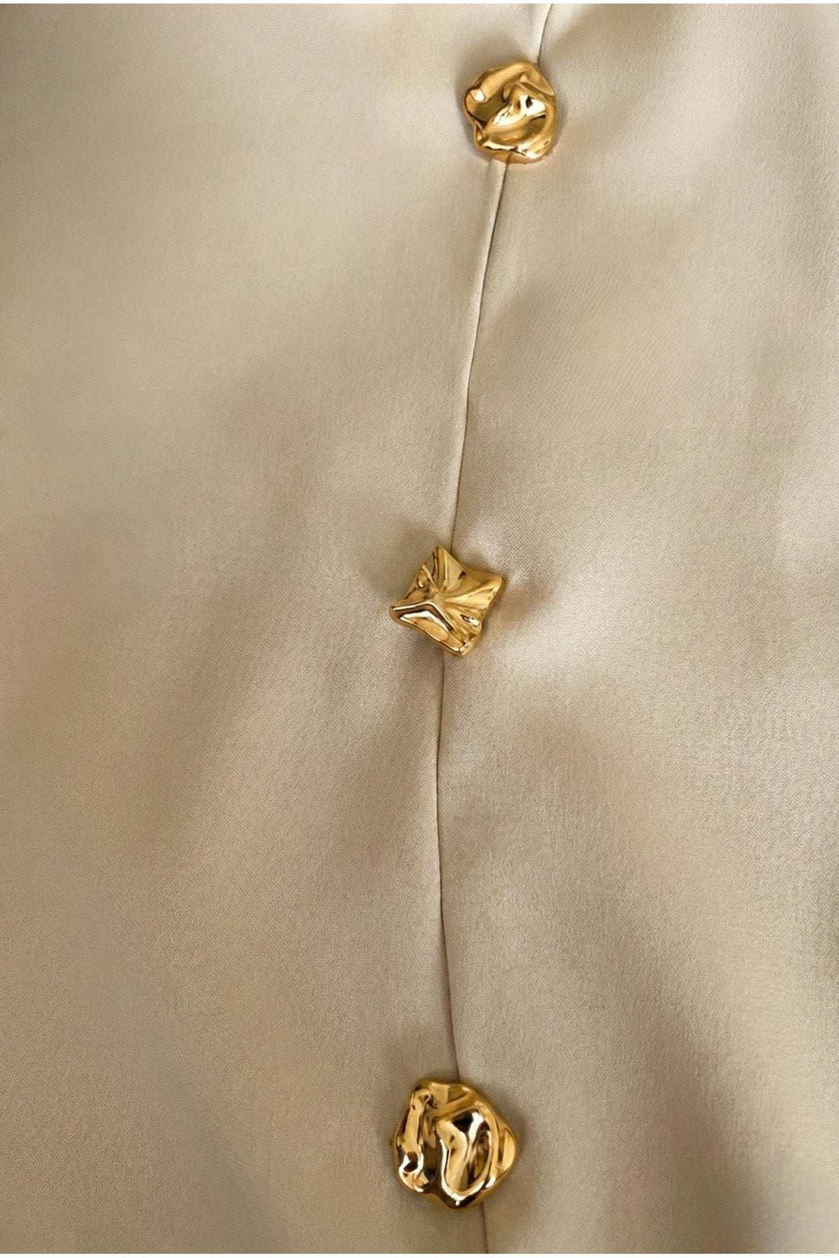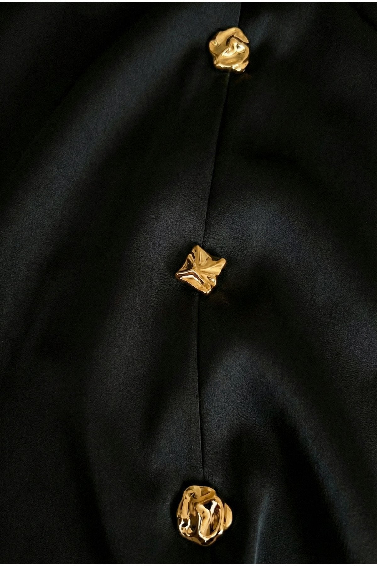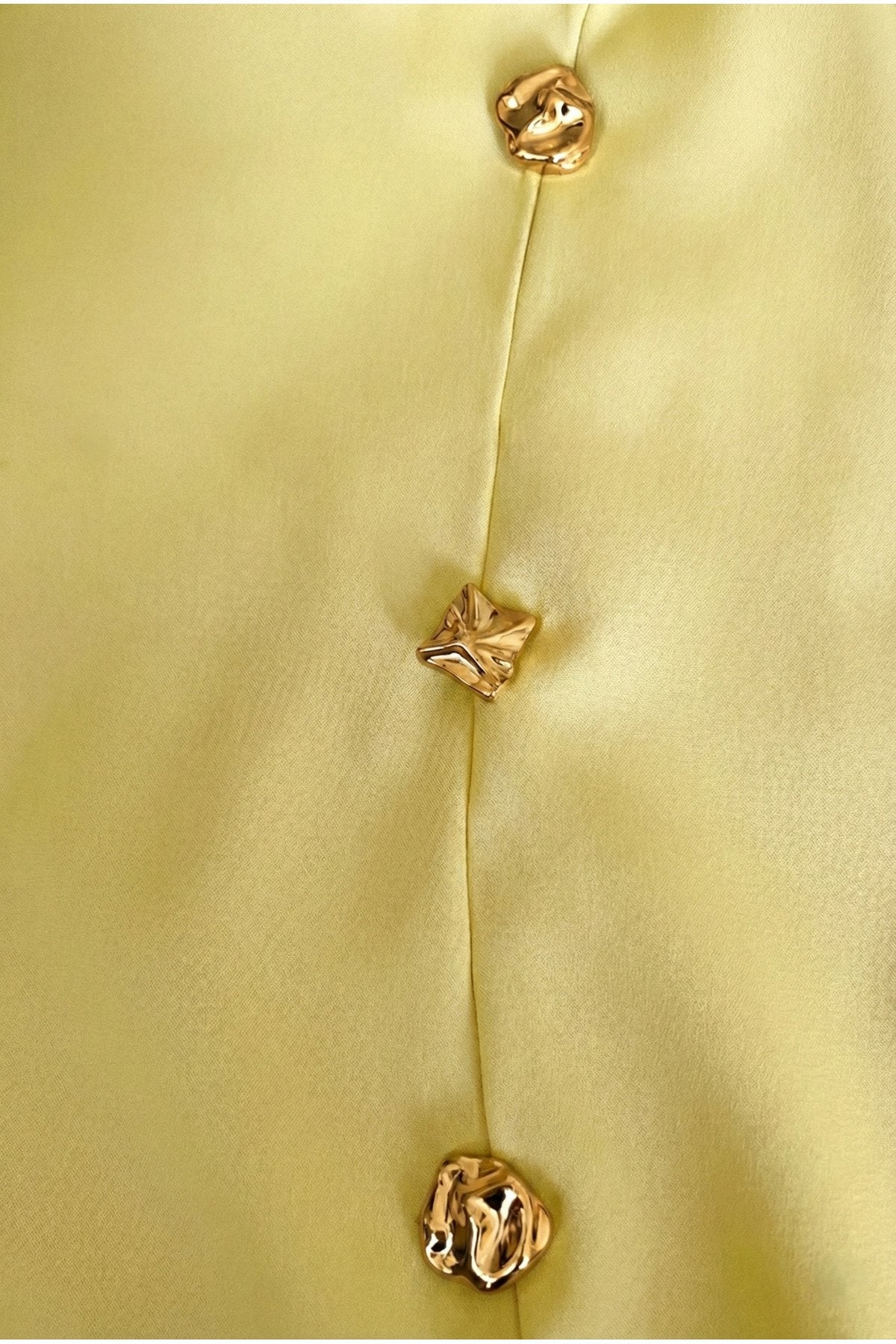 KADIN YIRTMAÇLI DÜĞME DETAYLI KOLSUZ ATLAS KUMAŞ MİNİ ELBİSE